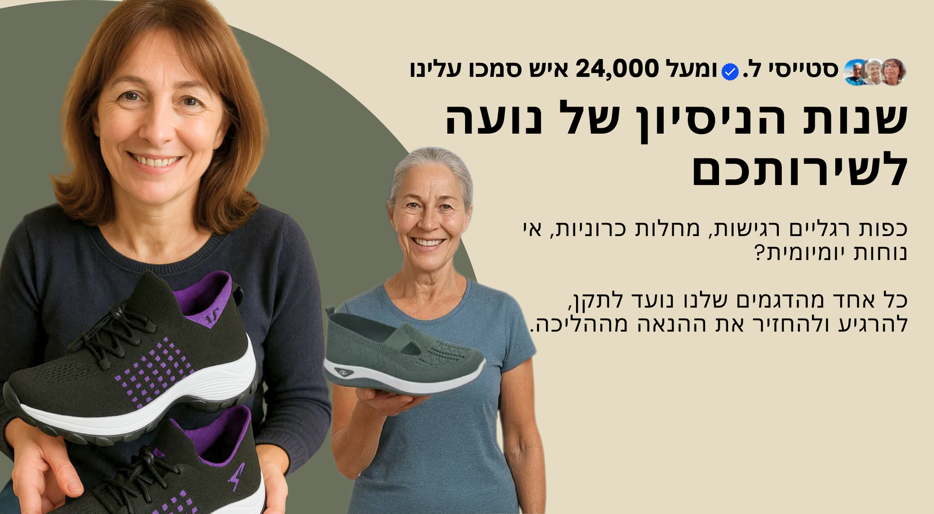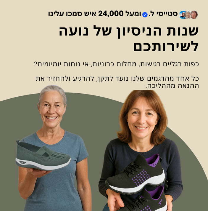 זה הרגע שלך לרכוש את נעליי נועה במחירים שלא נראו מעולם. צעדי לסגנון חדש בפחות כסף. מלאי מוגבל, זמן מוגבל — כשהוא נגמר, נגמר.