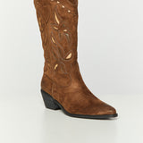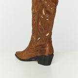 - עיצוב רקמה מורכב: עם רקמה יפה ומורכבת לאורך השוק והכף, מגפים אלו הם פריט בולט שמוסיף נגיעה של אמנות למראה שלך.