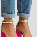 • רצועות קרסול מוזהבות למראה יוקרתי ואחיזה בטוחה